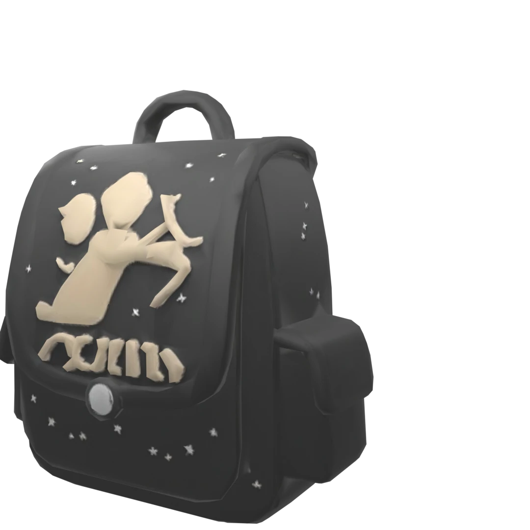 Cupid themed black backpack with tiny stars around the backpack and an image of Cupid in the middle