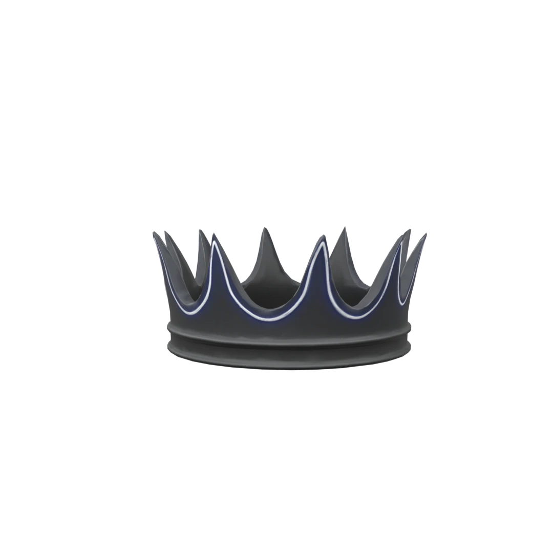 “Elegant jet black crown with short sleek spikes, subtle glow accents, low-poly optimized for Roblox UGC, metallic brushed finish, slightly futuristic but classy look, wearable Roblox hat accessory, 2025 fashion trend aesthetic.”