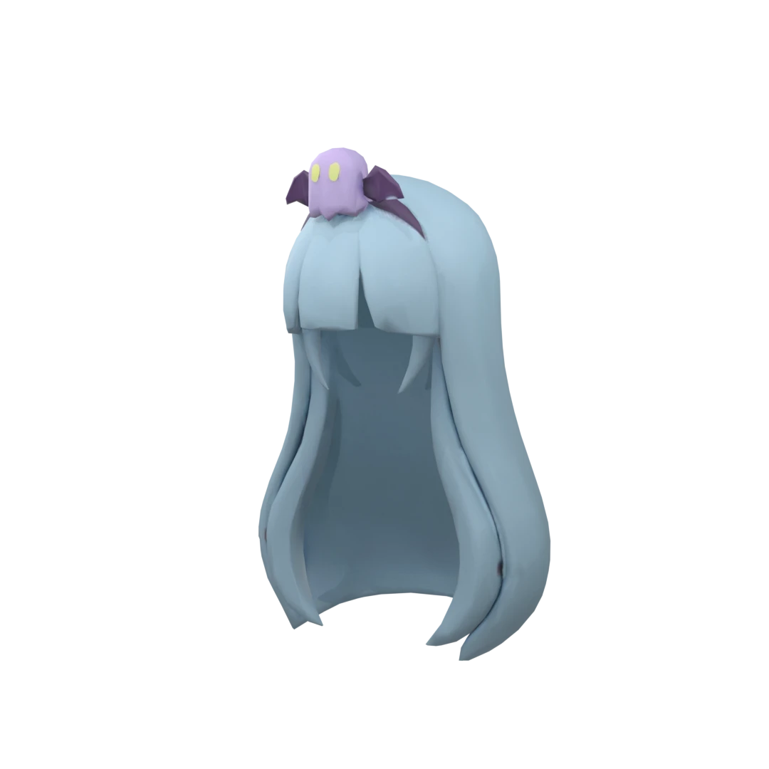 make me a long light blue hair with bangs and a cute hair accessory