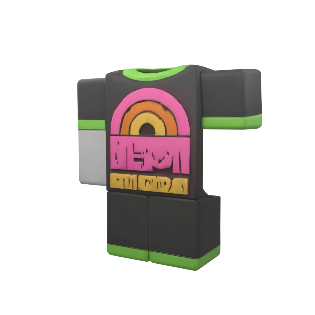 Roblox shirt with giant bold text ‘Certified Rizz God’ in neon rainbow letters, silly sigma cartoon face with glowing red eyes, dripping slime background, over-the-top goofy style.