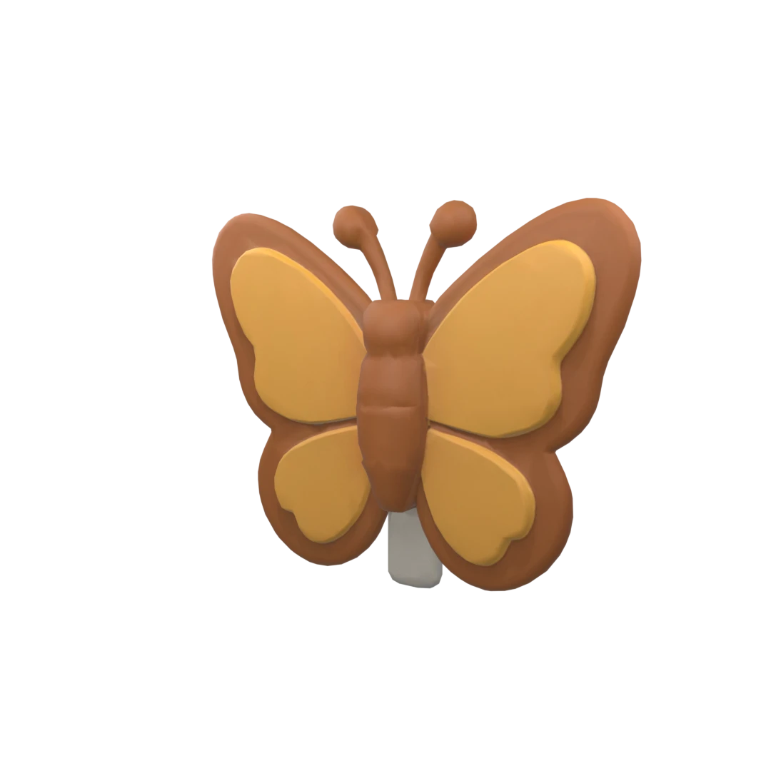 Roblox3D butterfly accessory in shades of warm brown and vibrant yellow, featuring a stylized design with distinct wing shapes and two antennae.