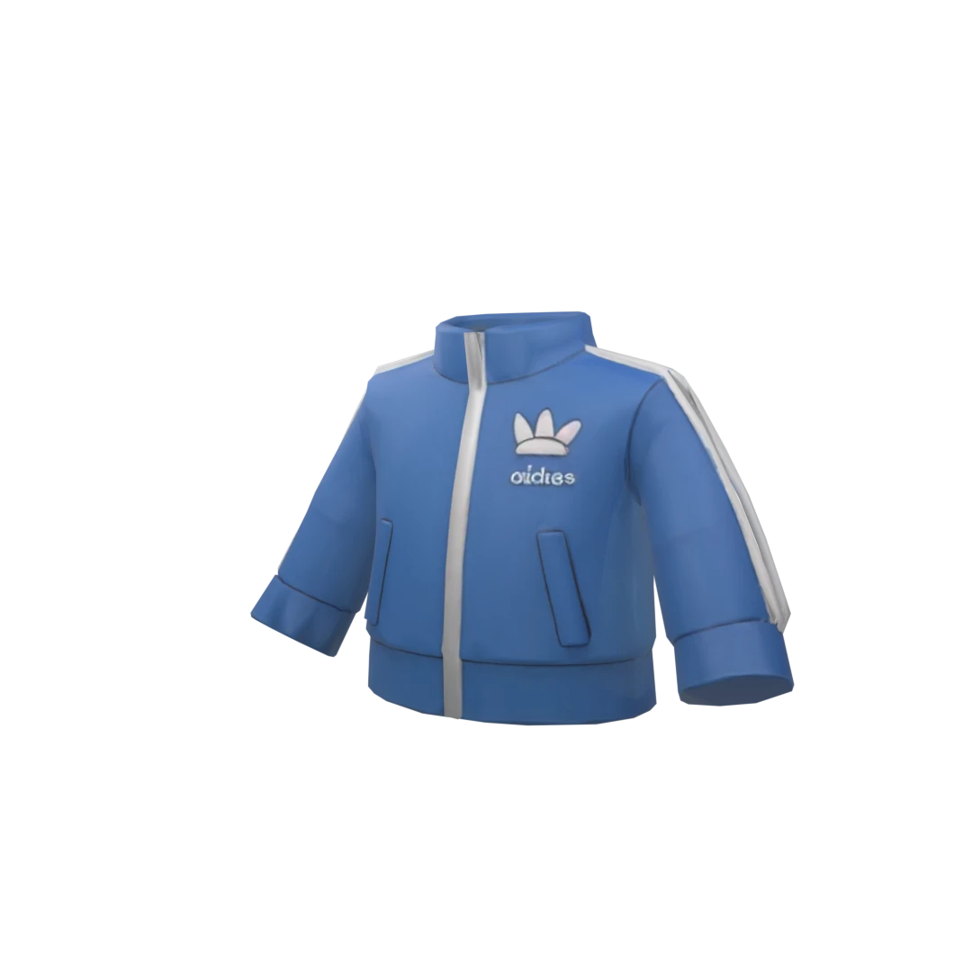 Roblox3D jacket featuring a sleek black body with blue collar and cuffs, adorned with a McDonald's logo on the left sleeve and a playful golden arch design.
