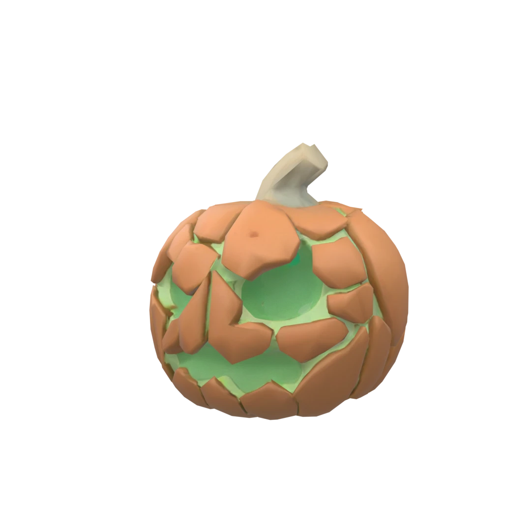Make it a broken pumpkin helmet with glowing green cracks and eerie smoke coming out.