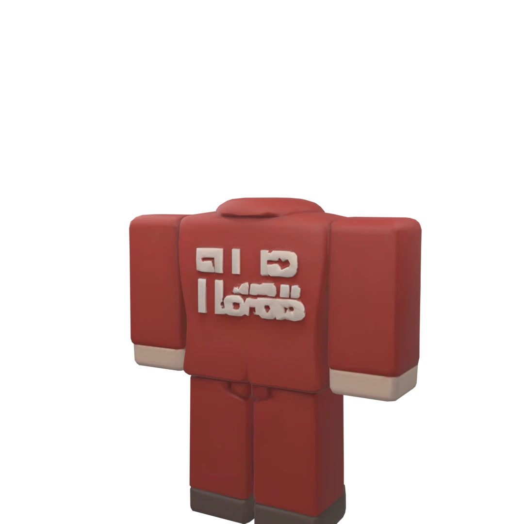 Roblox3D sweatshirt in vibrant red featuring stylized white text on the front, with bold letters that appear raised, giving a unique 3D effect.