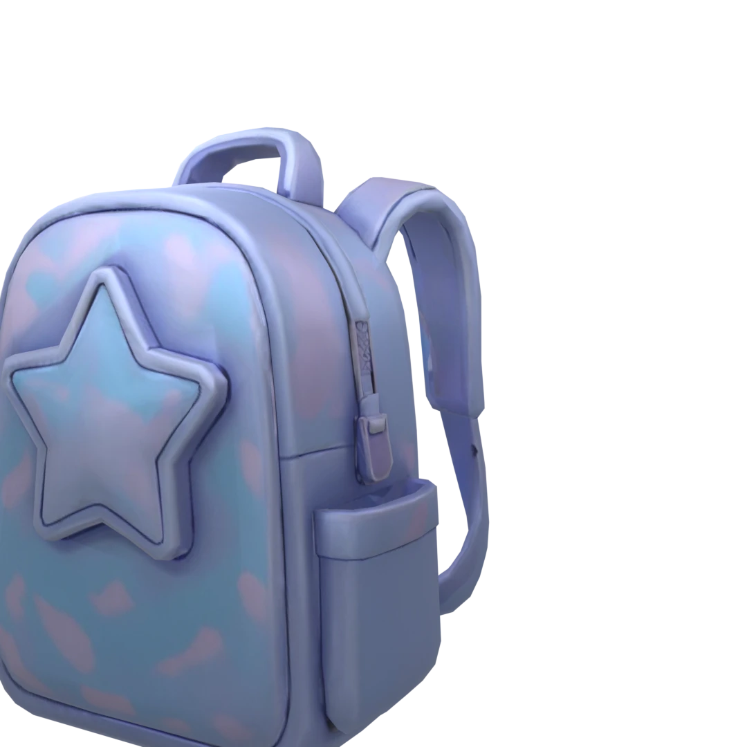 Holographic star backpack with color shift to light purple