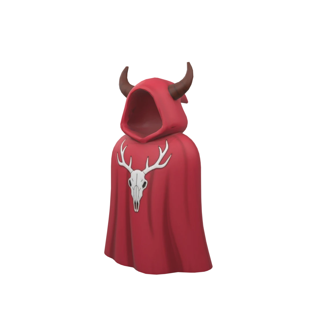 “Cultist Cloak” dear skull symbol with dear horns on a red cape