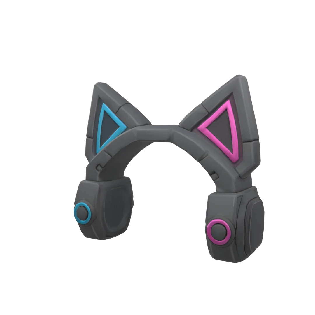 Roblox3D character accessory featuring a minimalist white base with vibrant blue and pink cat ears, designed for a playful and whimsical look.