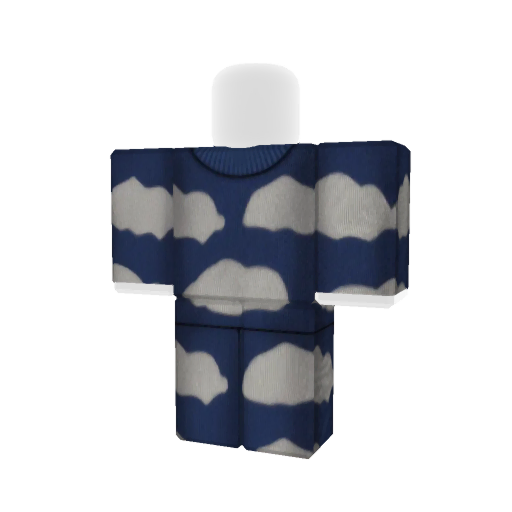 Roblox sweater featuring a navy blue base adorned with white cloud patterns, creating a cozy and whimsical appearance.