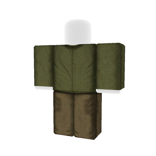Roblox shirt and pants set in dark olive green with a simple, rugged design and light brown trousers.