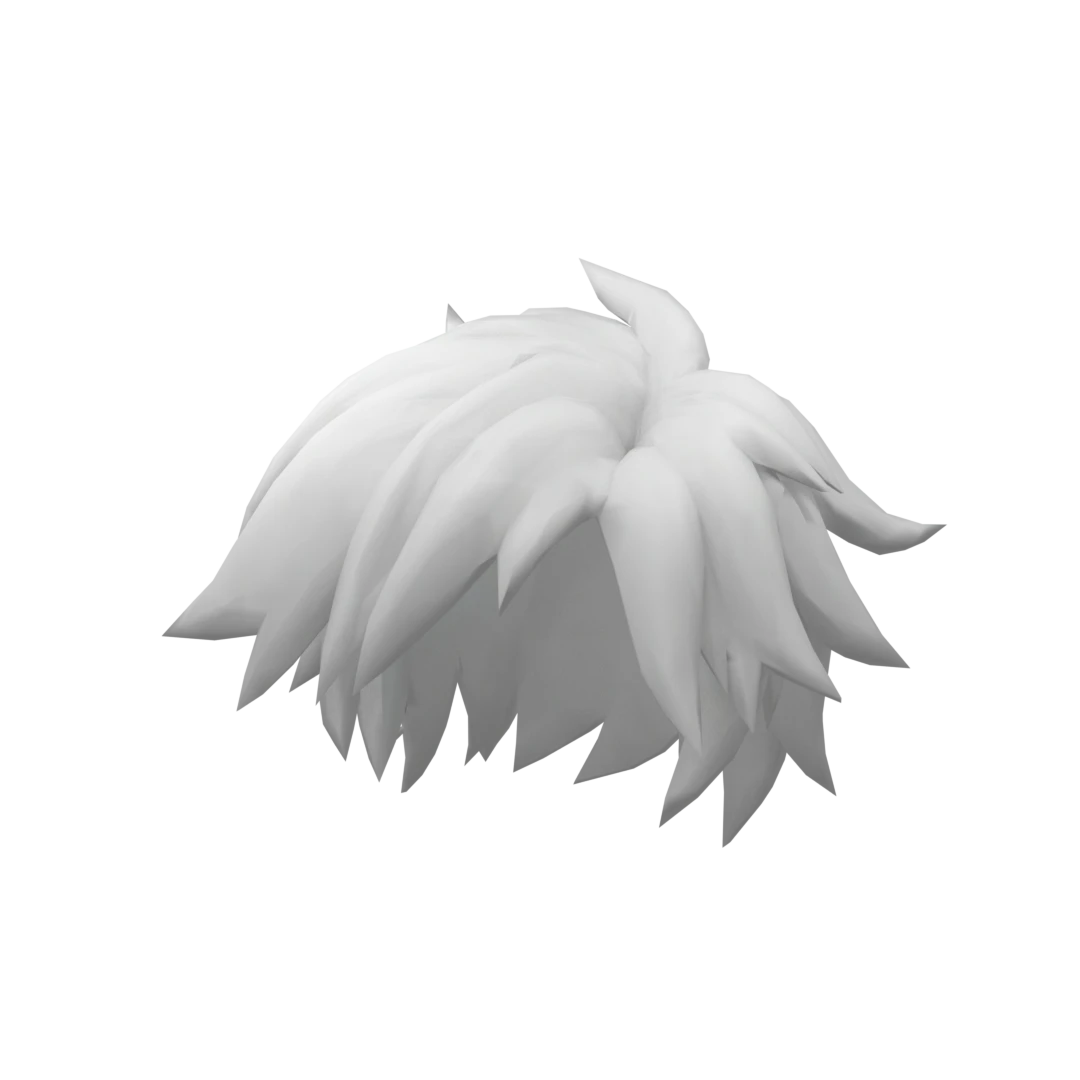 Create a Roblox UGC hairstyle that is tousled and messy with a realistic texture. The hair should have uneven, layered strands that fall naturally in different directions, giving a windswept, casual look. Color: pure white with subtle shading for depth and dimension. Avoid exaggerated or cartoonish shapes — the style should appear soft, natural, and modern, with a slightly edgy, streetwear-inspired aesthetic