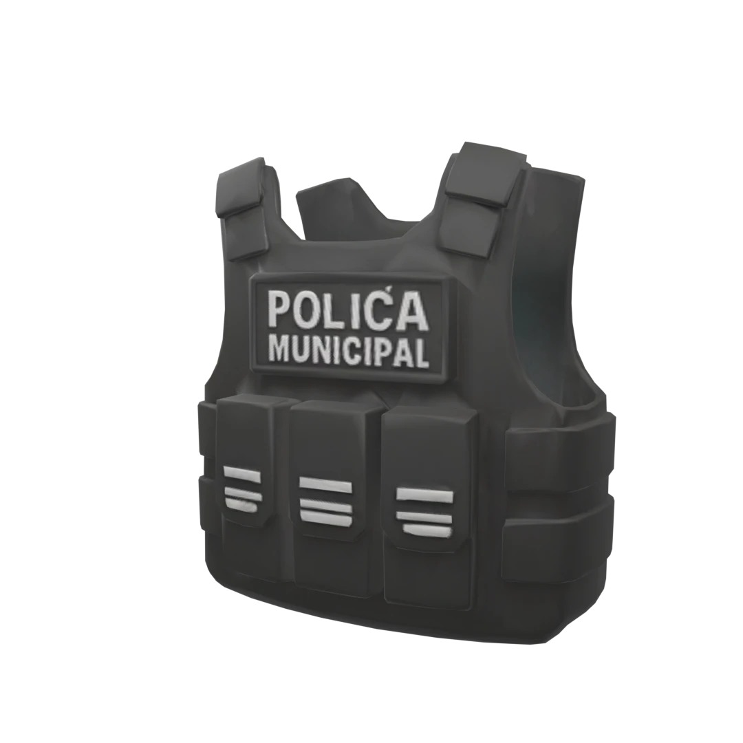 Patch on front, that says Policia Municipal