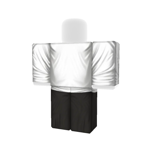 Roblox shirt with a plain white color featuring rolled sleeves and black pants, designed with a simple and casual style.
