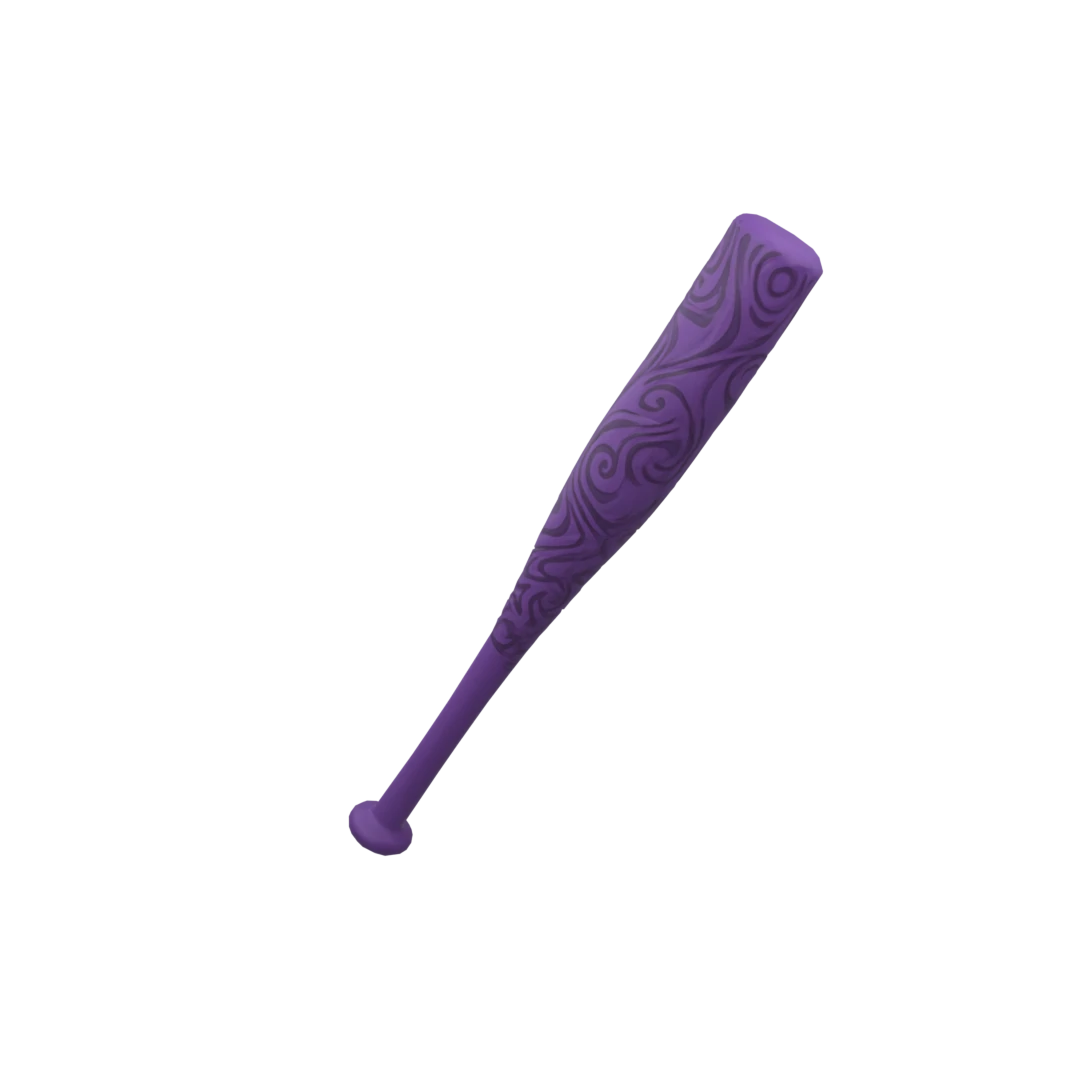 A vibrant purple bat featuring intricate swirl patterns etched along its body, offering a unique and stylish twist to a classic design.