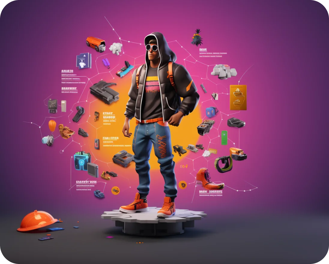 Unleash your creativity with our Fortnite Skins editor. Customize Fortnite clothes, accessories, and more, then wear yourself or showcase your unique designs in the game.